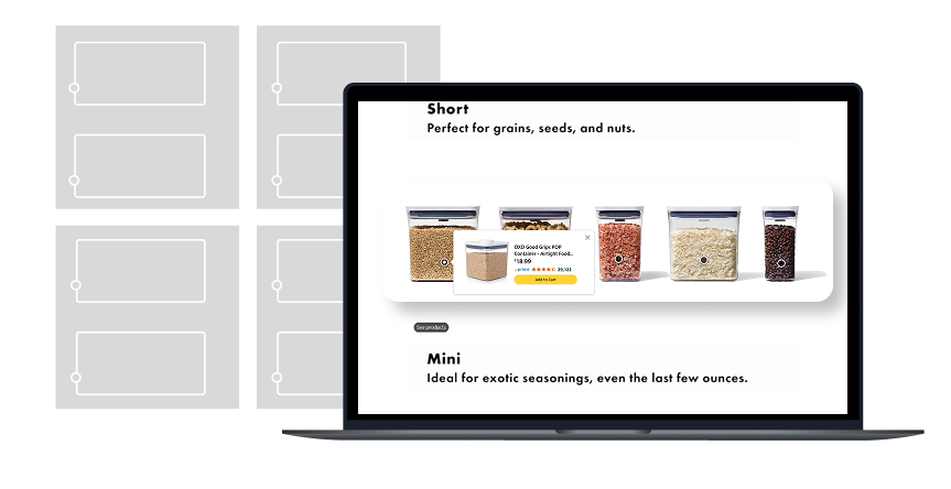 Create a user interaction that informs the customer about POP containers in new ways. Using high traffic retailer environments allow the customer to understand the assortment while capturing clicks with interactive retailer modules.